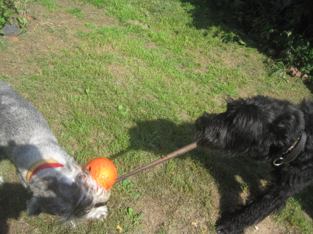 Только Тёма мячик взял....- Тасе тоже надо))))