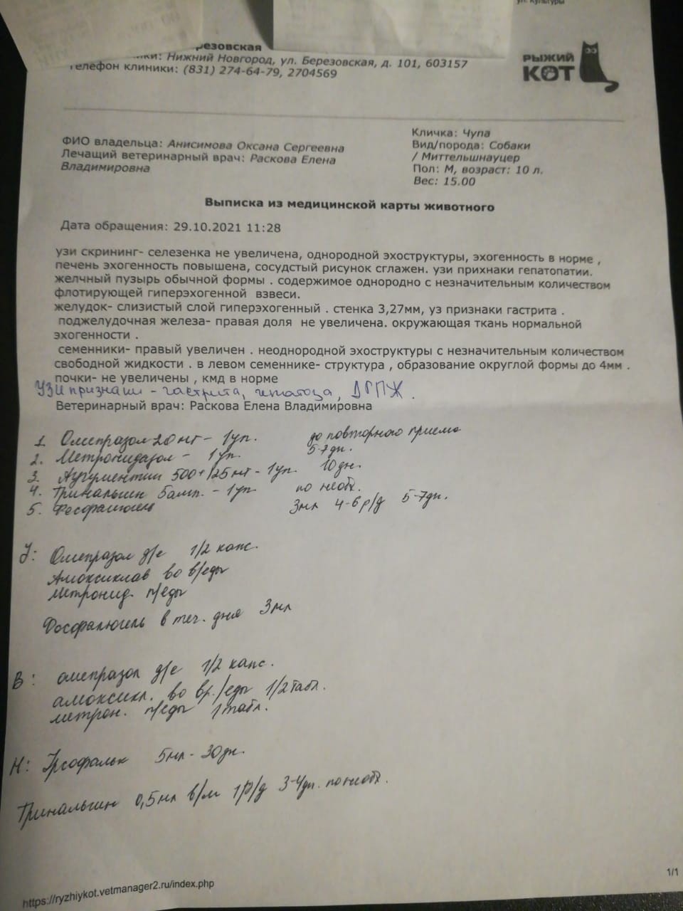 Ася, были на узи. По итогу лечим гастрит, гепатоз и показана кастрация из-за увеличенных семенников и доброкачественная гиперплазия простаты. Т.е. это и может давать боль и воспаление. По лекарствам мы вечером посмотрим что есть у нас в наличии, чего нет докупим. Если на самом деле проблема только в гастрите и яйцах, то вылечим и обрежем