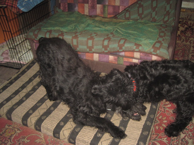А мы расширяем "игровую" территорию)) Два чёрных "малыша" теперь играют и дома))Практически на одном матрасике)) Очень корректно и вежливо по отношению друг к другу, при этом немилосердно наступая на попадающих регулярно под ноги миттелей))))