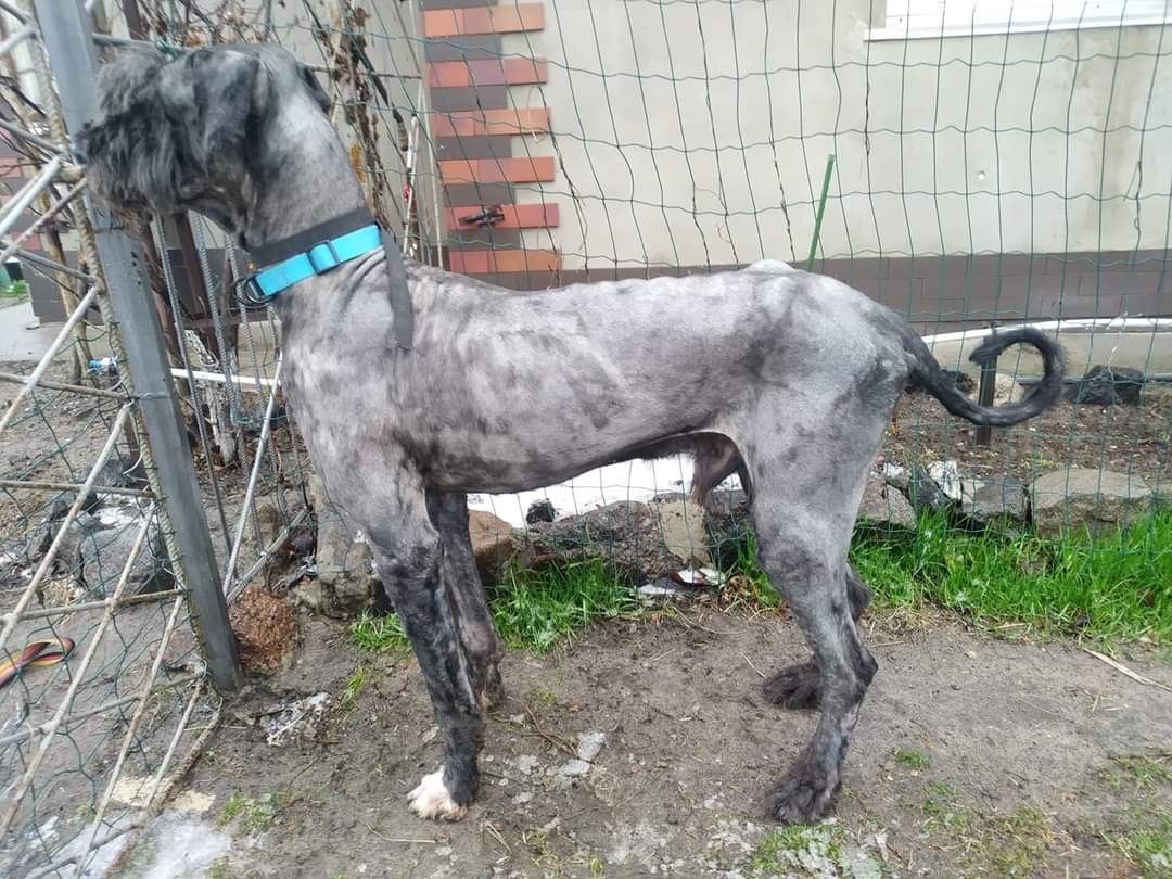 Впечатления Натальи -несмотря на худобу ,от круплый по костяку,в холке 70 см .Очень адекватный и не агрессор. Голодный,с ленточными квартирантами.Пришлось его забрить в ноль,потому как разгребать было нечего,сплошной валенок.Голова вполне ризенячья,и повадки тоже. Меня лично смущали белые носки,но поговорив с ризенистами поняла,что возможно плембрак,да и разведение ,как бы помягче сказать (((