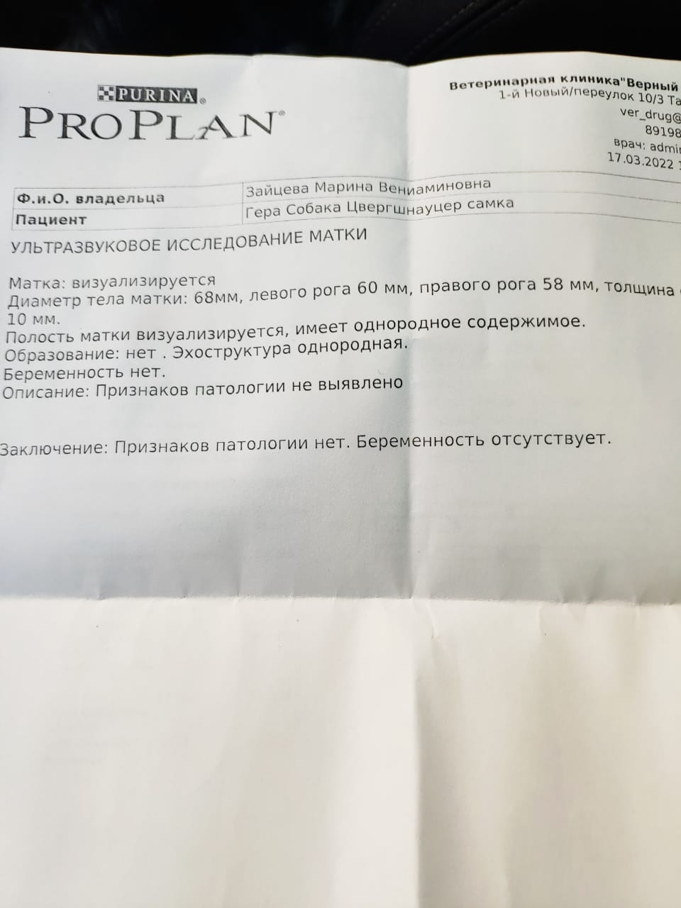 УЗИ и анализы, потом перенесу пост в регистратуру, если хозяева не найдутся