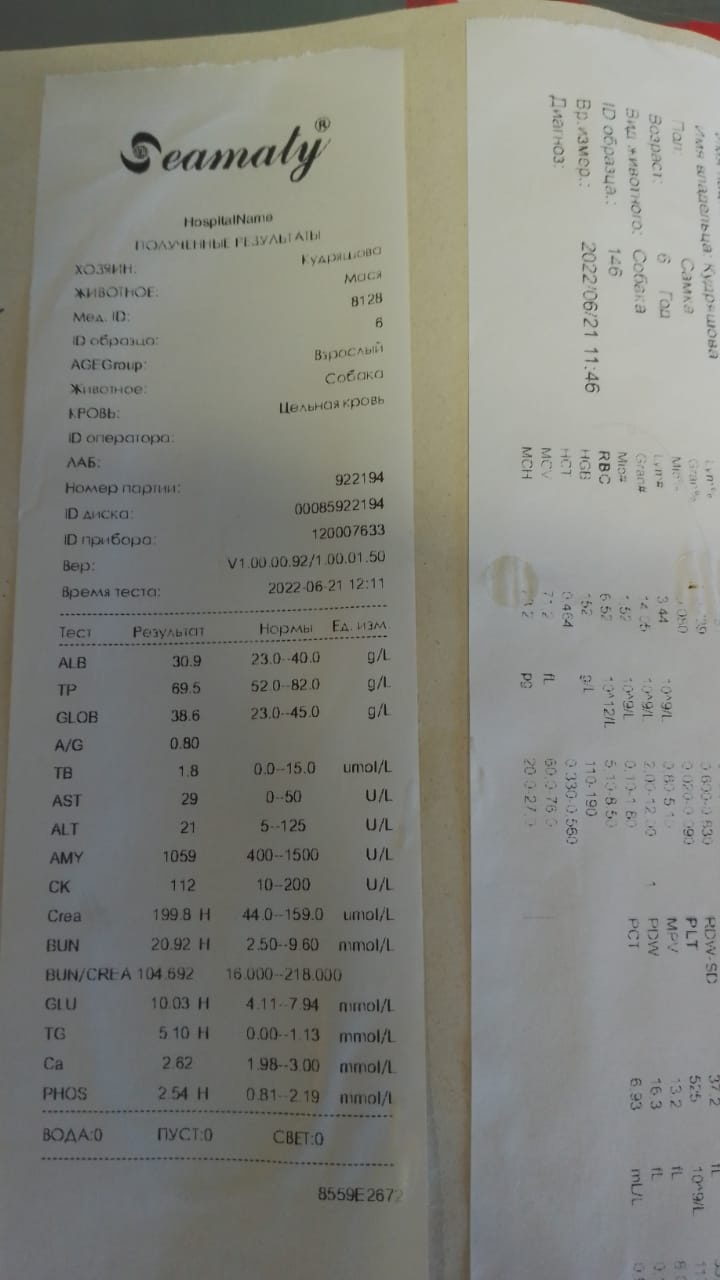 Кровь: ОКА стандарт + б/х 22 показателя + щитовидка собак + кортизол ифа