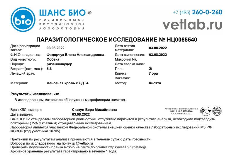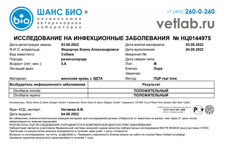 Первая вроде из наших собак, имеющая оба анализа положительными:(