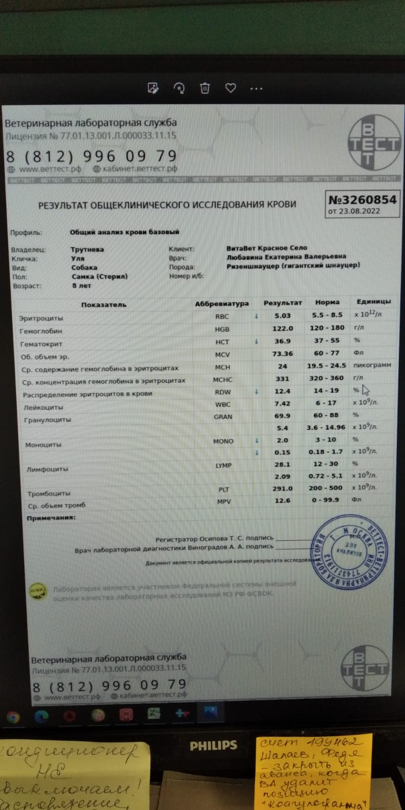 Сделали с Улькой УЗИ селезёнки. В прошлый раз в ней было два образования, сейчас она просто увеличена. К сожалению на прошлом УЗИ не указан размер селезёнки и не понятно- увеличилась ли она. Контроль через 3-4 мес. Если ещё вырастет, то придется резать. Велели не скакать и не прыгать с высоты. Кровь клинику сдали.