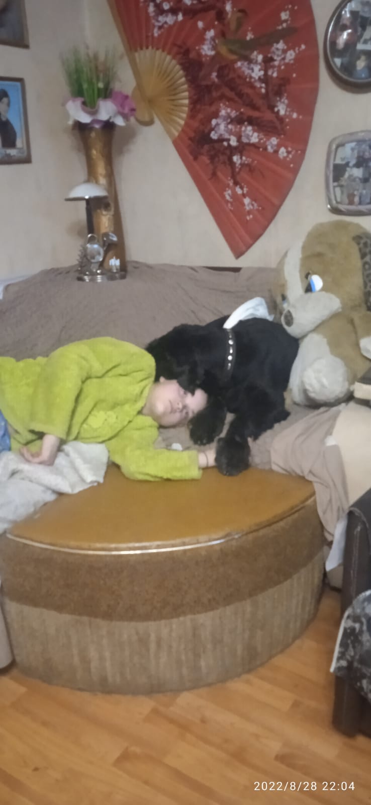Теперь перебрался на маленький диванчик, который выбрал сам.
