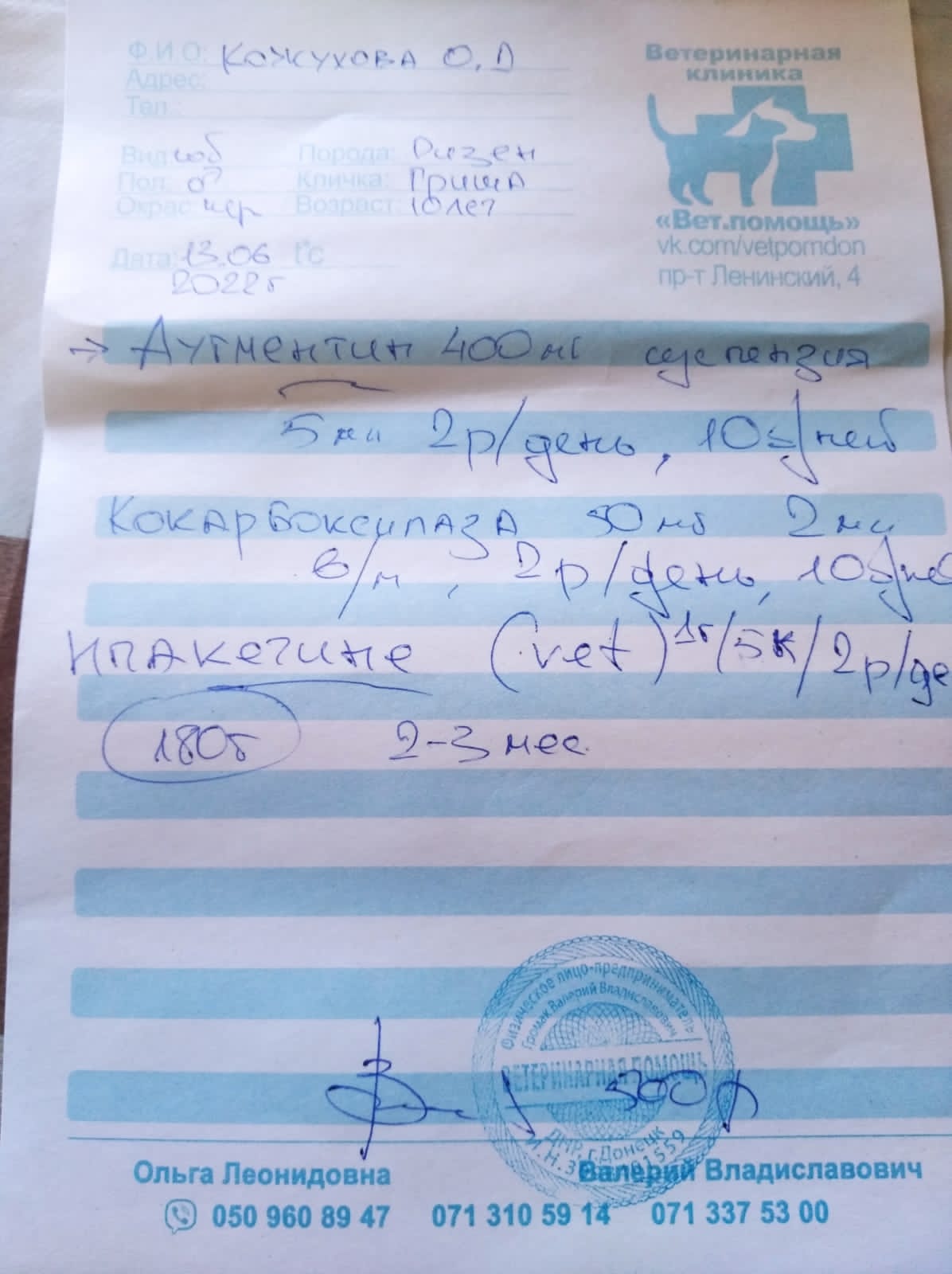 Ирин, от дирофилярий Оксана даст Диронет и может я упустила, вроде давала она ему помимо Несгарда,я её им в марте обеспечила достаточно. И Бравекто 20-40 кг ему передадим.Все положенные лекарства примет, сдадут кровь и тогда операция. Думаю Хан-Гриня пока у Оксаны посидит.
