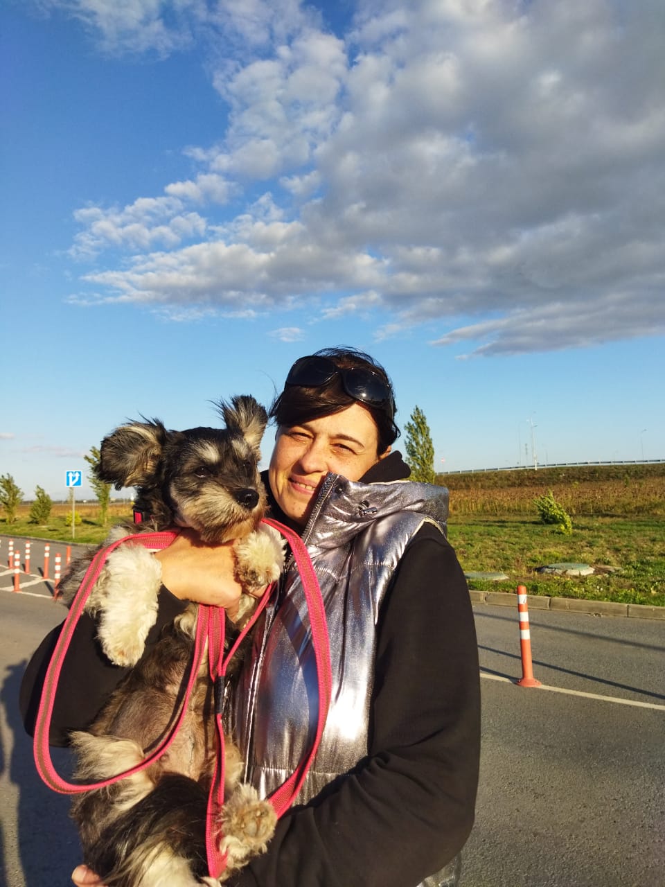 на нашей стороне. Всё увидела людей , с мелкой. Перешли! Отзвонилась Вале, забрали малышку и поехали домой. По пути заехали за ветпаспортом(подарили его для барышни), она пересекала границу с паспортом чужой собаки. Облаяли коров на выпасе, собак на заправке.