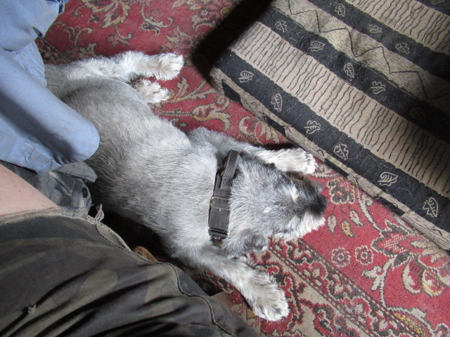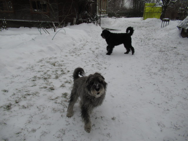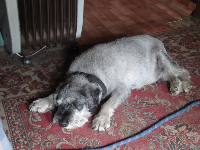Но, жизнь продолжается и теперь у нас есть Филя..)) Старенький, плохо ходящий и плохо слышащий дедусяка-миттеляка) уже осадивший Джоя ,потому как надо ходить чинно и строем , как минимум перед его высокоблагородием Филей)) У Фили зубы белые, на зависть)), львиный рык и упёртый характер. Ходит Филя настолько плохо, что на речку мы его не берём, ему двора за глаза хватает.. Филя обосновался у нас на крылечке и ни за что не хочет (или не может)преодолеть три ступеньки и войти в дом...даже за еду....Фила, кстати не пищевик совсем, хотя аппетит у него хороший).Джой его опасается, Шкипер и Тёма- не видят. Тёма меня к Филе даже не ревнует.. во как)