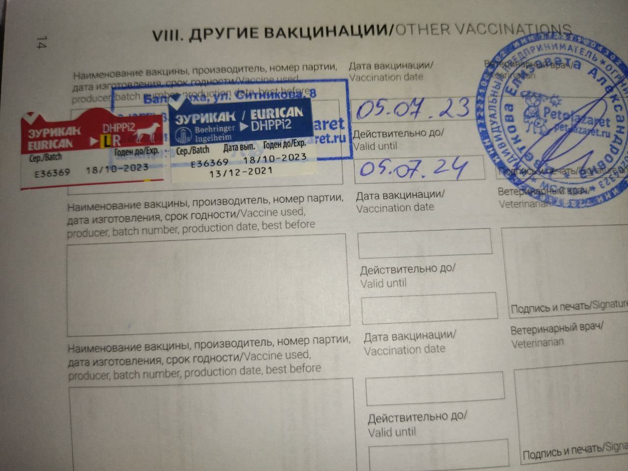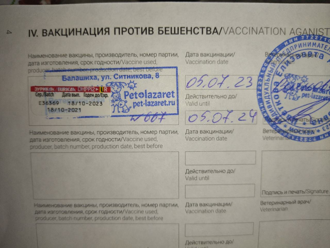 05.07.2023г. Рейчел прошла вакцинацию эуриканом.
