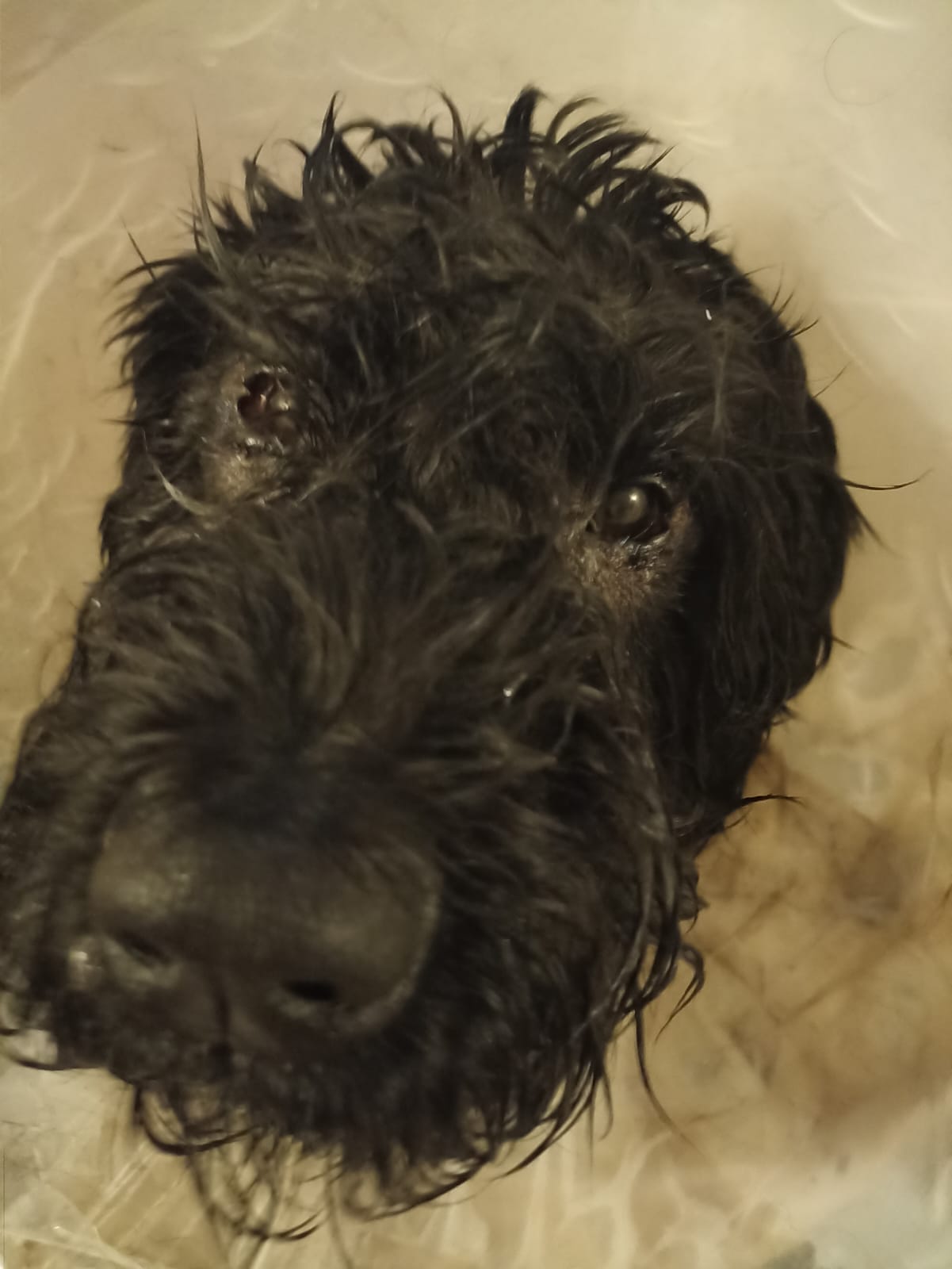 Дома! Отмылись, поужинал с аппетитом. В ванну залезал "через колбасу", не мог понять как. Но колбаса творит чудеса. Сейчас сохнет, перед сном как высохнет-еще погуляем. Песик-золото. Спасибо Вам за все, ещё видео завтра пришлю со встречи."