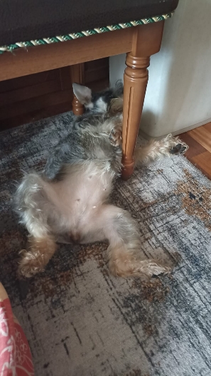 Шерсть хорошая. Тримминг. Терпеливая. Тянется быть рядом. Очень прыгучая. Очень хорошая девочка.