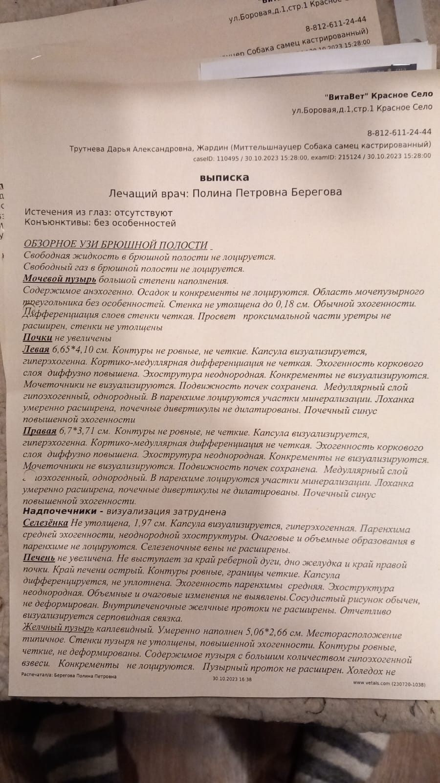 Там оставили традиционную 15-ку, сделали УЗИ, сдали анализы, измерили давление (оно высоковато) . Ещё взвесились, 23,5 кг чистого золота