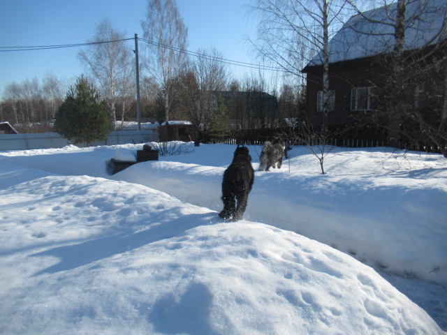 Появились стаи весенних,очень весёлых и слегка шалых, собак))) Собаки летаю(!!!) по участку и верещат от радости и солнца!)) Эти радостные зверики торопят весну .откусывая на лету\бегу от каждого сугроба))И уже начали садовые работы ,обгрызая "лишние" ветки с деревьев и кустов.