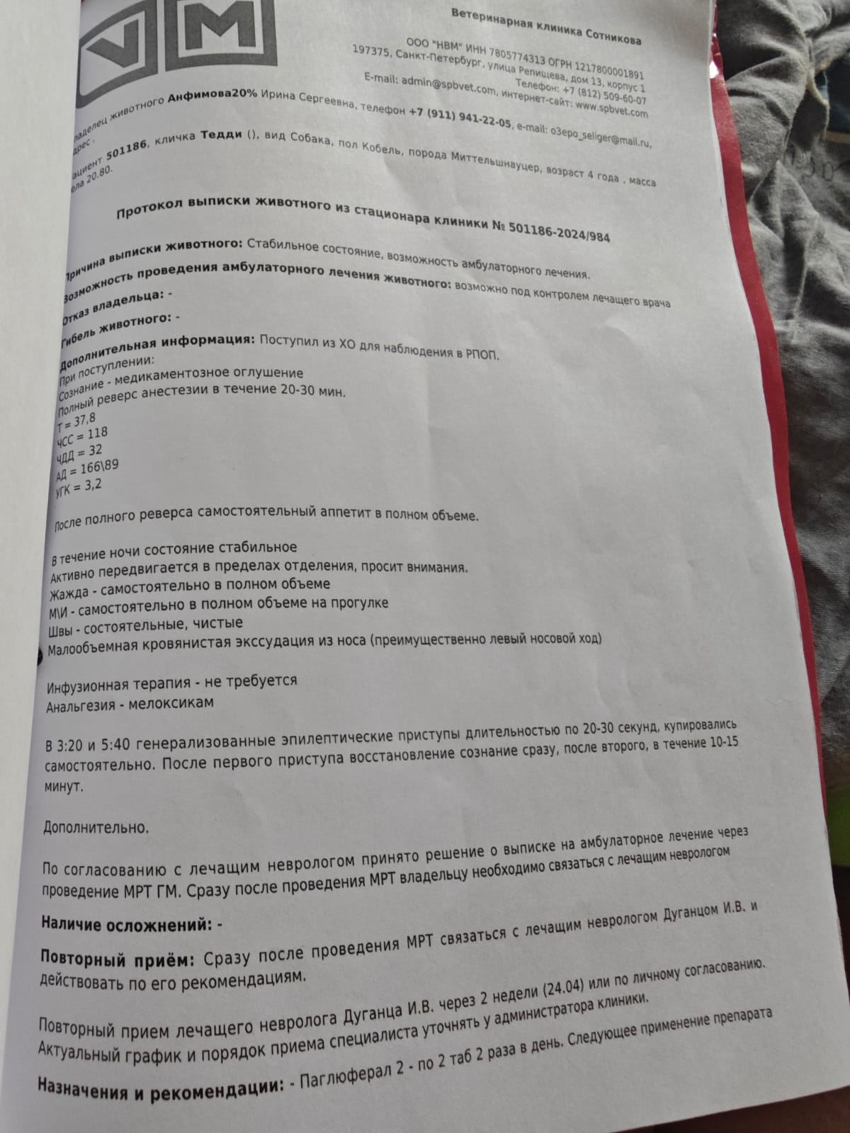 Оказывается, приступ был у Тедди 1 февраля, но почему-то передержка в Архангельске нам об этом не сказала.