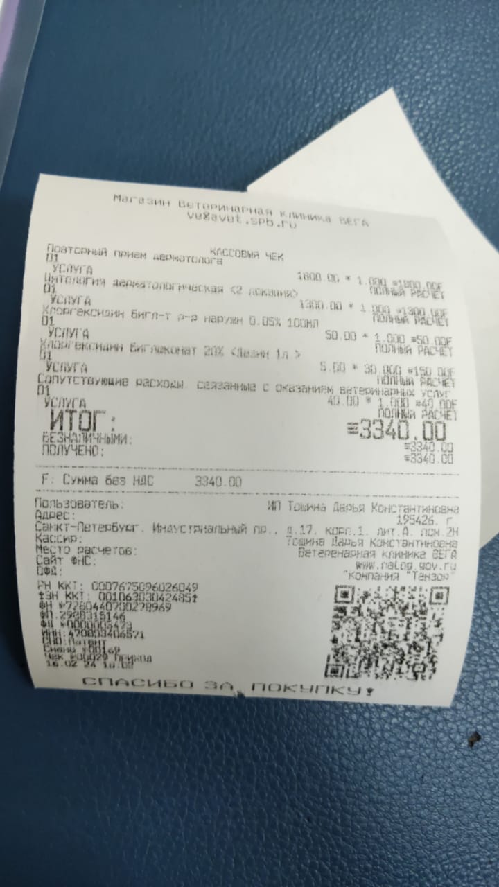 Чек за визит к дерматологу, результаты потом в регистратуру повешу