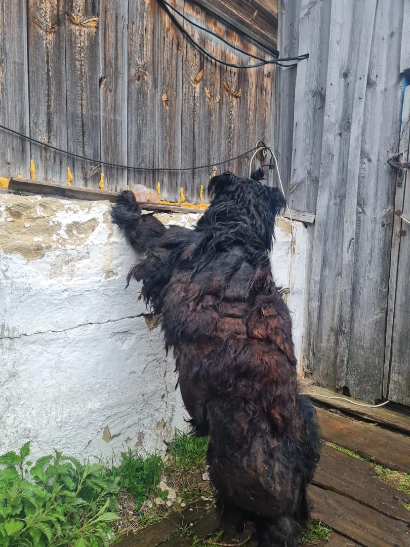 Подстригли его ( весь войлок потянул на кг 15!). Сколько же Ирине и ее помощникам досталось!
