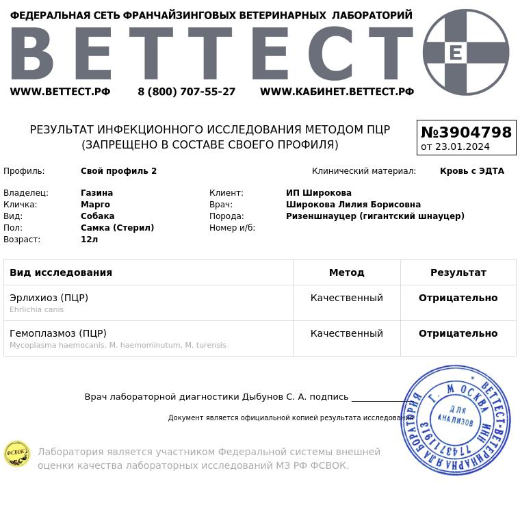 Еще ждем эрлихиоз и гемоплазмоз ....