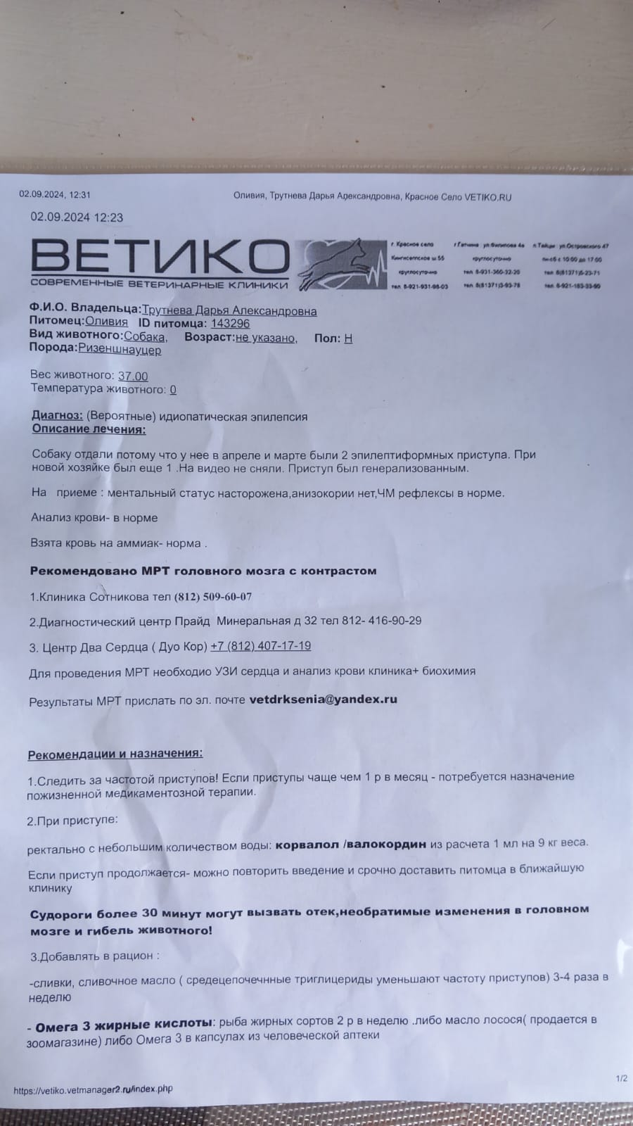 Сегодня, 13.03.25 в 12.55 у Оливки был очередной приступ(