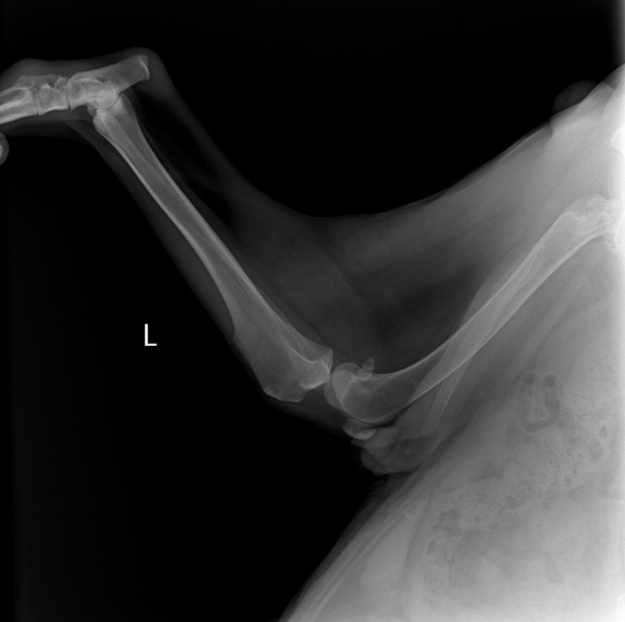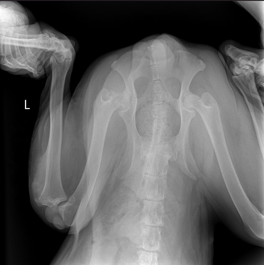 Сильнейший коксартроз тбс на больной лапе.....который не заметили на первичных осмотрах....зато настаивали в необходимости кастрации. В результате изменения положения лапы, нагрузки - воспаление и боль.