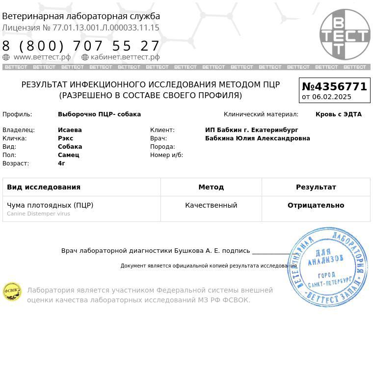 Пироплазмоз отрицательно.
