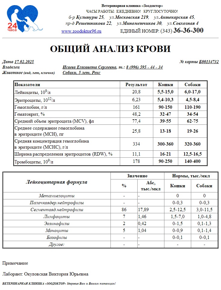 Анализы вчерашние, сегодня пришли .