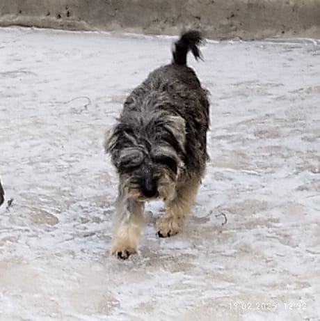 Нежная, один скелетик. На прогулке не отходит ни на шаг. Жрет, как не в себя. Мылась с удовольствием, обработана финпристом.