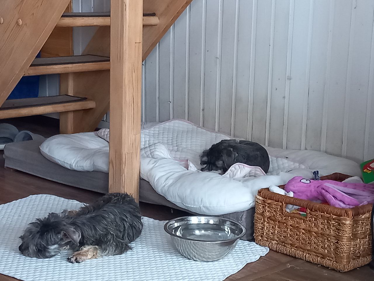 Она жила в питомнике. Так как она не участвует в разведении, заводчик согласилась ее отдать для того, чтоб мы нашли ей хороший дом.