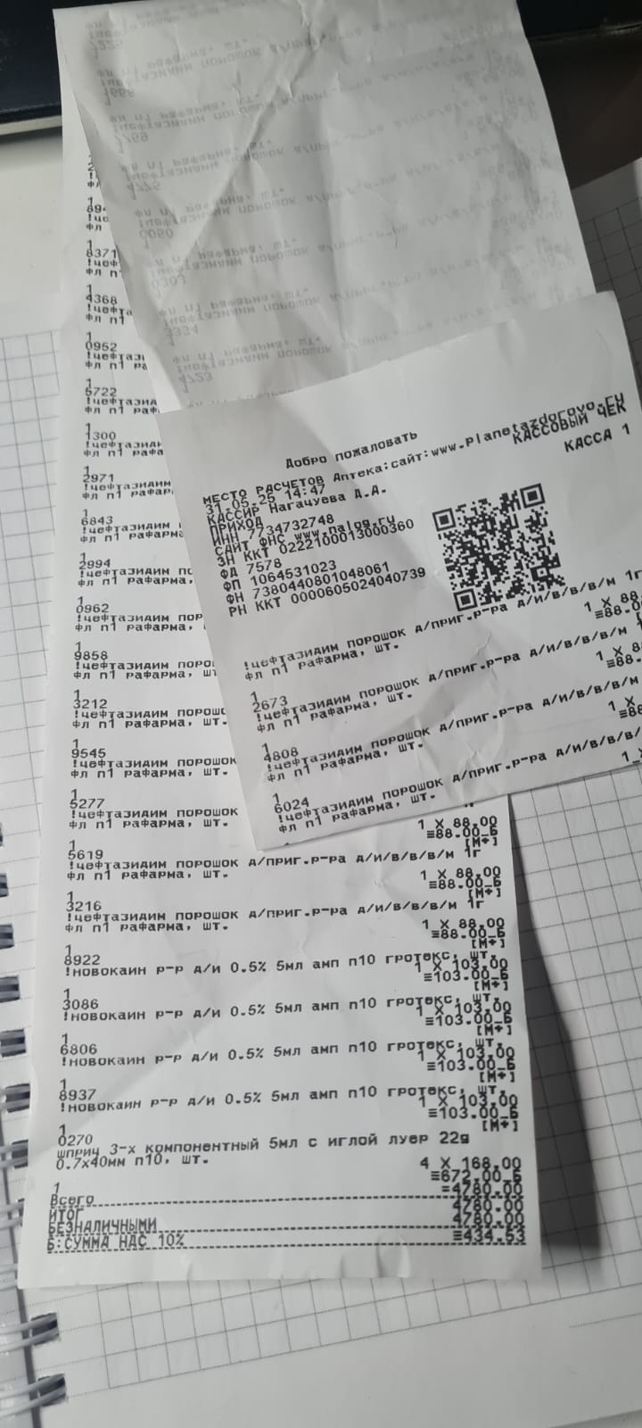 Финансы: Цефтазидим, новокаин, шприцы 4780+ 478=5258