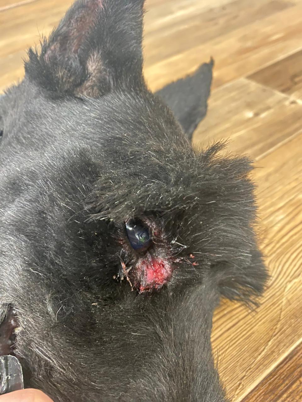 С глазами какая то беда. Промыли, почистили. Девушка пока в стрессе. Но достаточно вменяемая. На поводке ходит нормально. В дом заходит спокойно, лестницу знает. Пока подвывает. Боится нас, но всё равно идёт. Зубы не показывает, просто отворачивается, чтобы её не трогали.