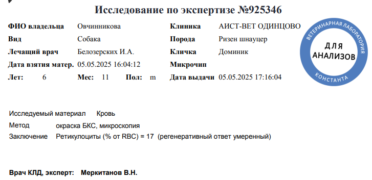 пироплазмоза не обнаружилось: биохимия приличная (это я врача цитирую) а вот ОАК плохой: вот тут то собственно и начинаются наши приключения, потому что я откровенно говоря замешкалась выясняя возможные последствия и степень глубины проблемы...