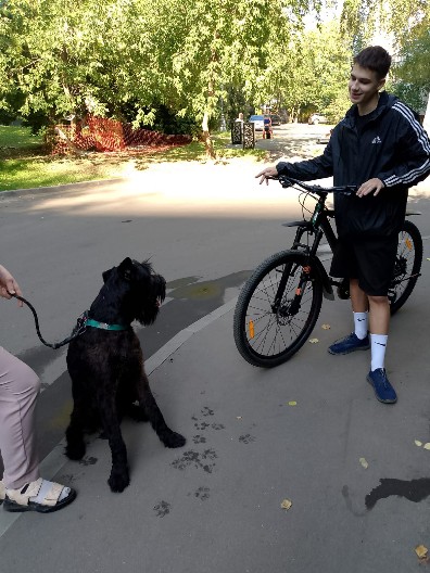 На фото с Ральфом мальчик, который болеет ризенами... Все тонкости породы изучил в теч. 3-лет. Они приехали из Новороссийска и пока на съемной квартире, но в планах покупать дом в Москве. Большое спасибо Насте, хозяйке Ральфа, которая согласилась встречаться с юным любителем ризенов( именно ризенов!), чтобы он мог общаться с породой! Даже в Бетховен приезжали к Кате, которая брала с собой Шейха и Эша.