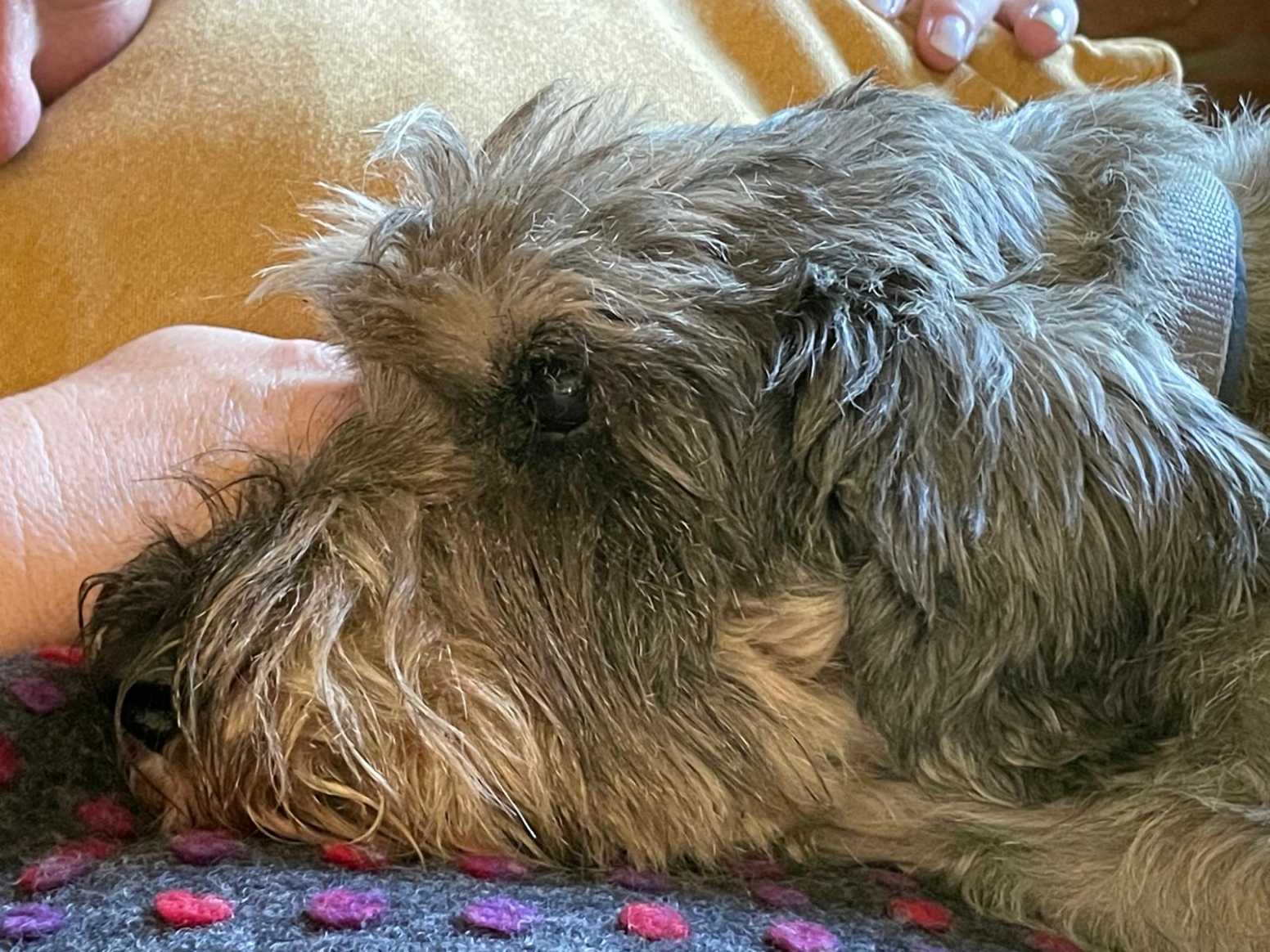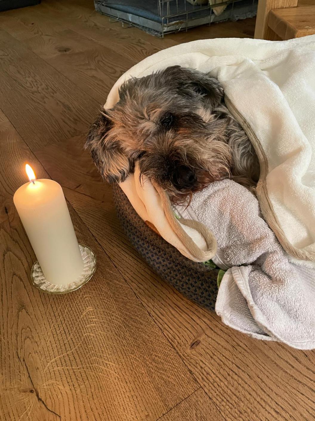 She had a tumor on the heart and water in the lungs. She has hardly got any air and would soon have suffocated. We didn't know anything on Tuesday, today we had to let her go.