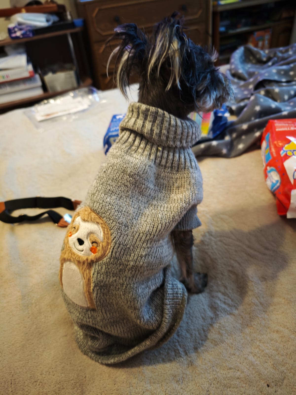 Нам прислали подарки, Евгения и Оксана, теперь у нас есть новый комбез, новая игрушка крокодил, иголки для ручки, шампуньки, корм угощение и даже открытка чтобы Герочка поправлялась