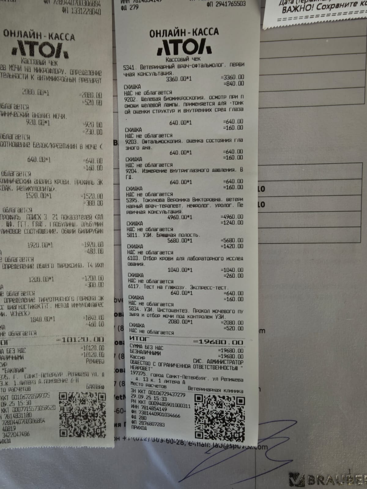 Чеки за визит в Сотникова.