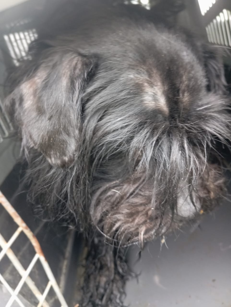 Серую, как смогли подстригли.. Черного машинка не взяла...