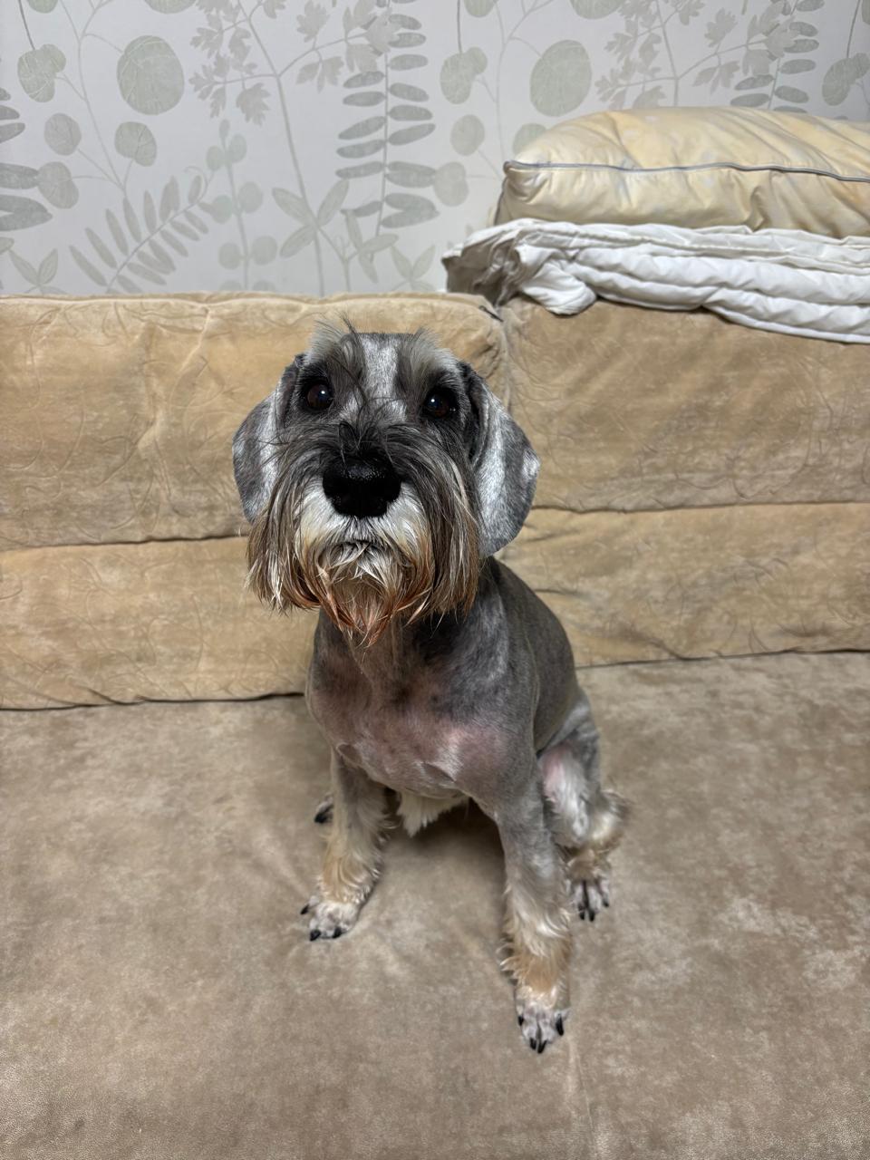 Принимает по назначению 2 раза в день препарат Габапентин. Не триммингуется, стрижется. Спину и бороду дает вычёсывать без проблем, лапы не очень.