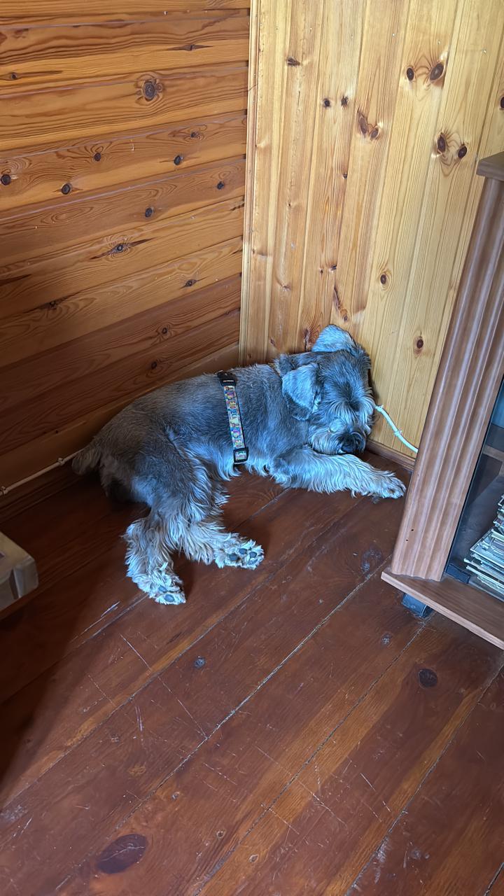 А нервно гуляет потому что триггер курьеры на электровелосипедах: на нас наехал курьер в 2023, подъехал вплотную к мне и Руте сзади и задел обеих. В целом всю прогулку она нервная, напряженно высматривает велосипеды. Как только видит, даже издалека - громкий лай, рвет поводок, набрасывается. Отвлечь ее и успокоить не получается. Зоопсихолог прописала Габапентин и мы гуляем в солнечных очках для собак - чтобы она меньше смотрела и больше нюхала, ищем наиболее безлюдные места. При этом на даче загородом абсолютно спокойная собака, много спит и расслабляется.