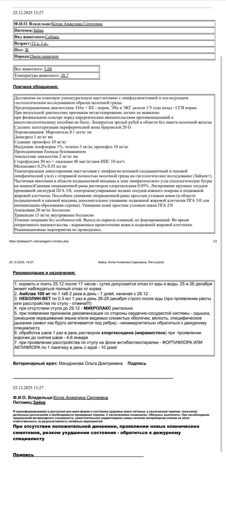 Краткая ветеринарная информация по подопечным Фонда помощи шнауцерам (выжимка без обсуждений)