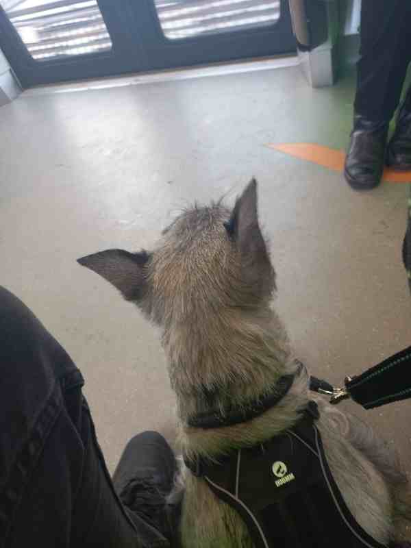 Корки на спине прошли, уши чистые. В остальном нормально, потихоньку привыкает к городу. Уже не гавкает на большие машины. На курьеров - через раз. В метро трясся первые минут десять, потом ехали нормально. В такси переживал, но ехал спокойно. Думаю на следующих выходных съездить показать ему робота-курьера и покатать на автобусе)