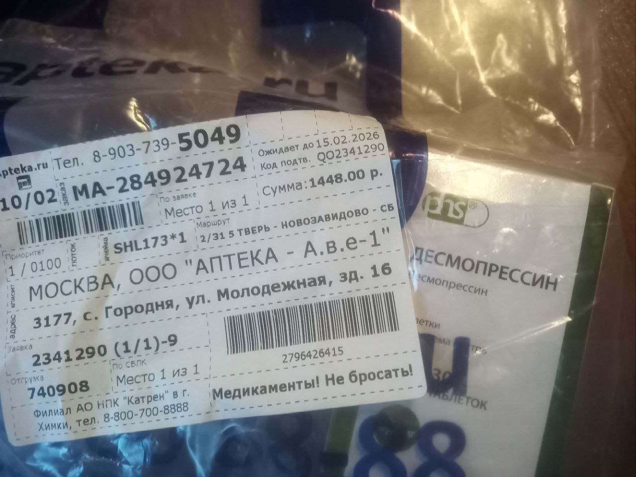 Прикупили ещё 2 пачки десмопрессина 0,2 по 1602₽ каждая для Бади. На 60 дней. Первую допили.