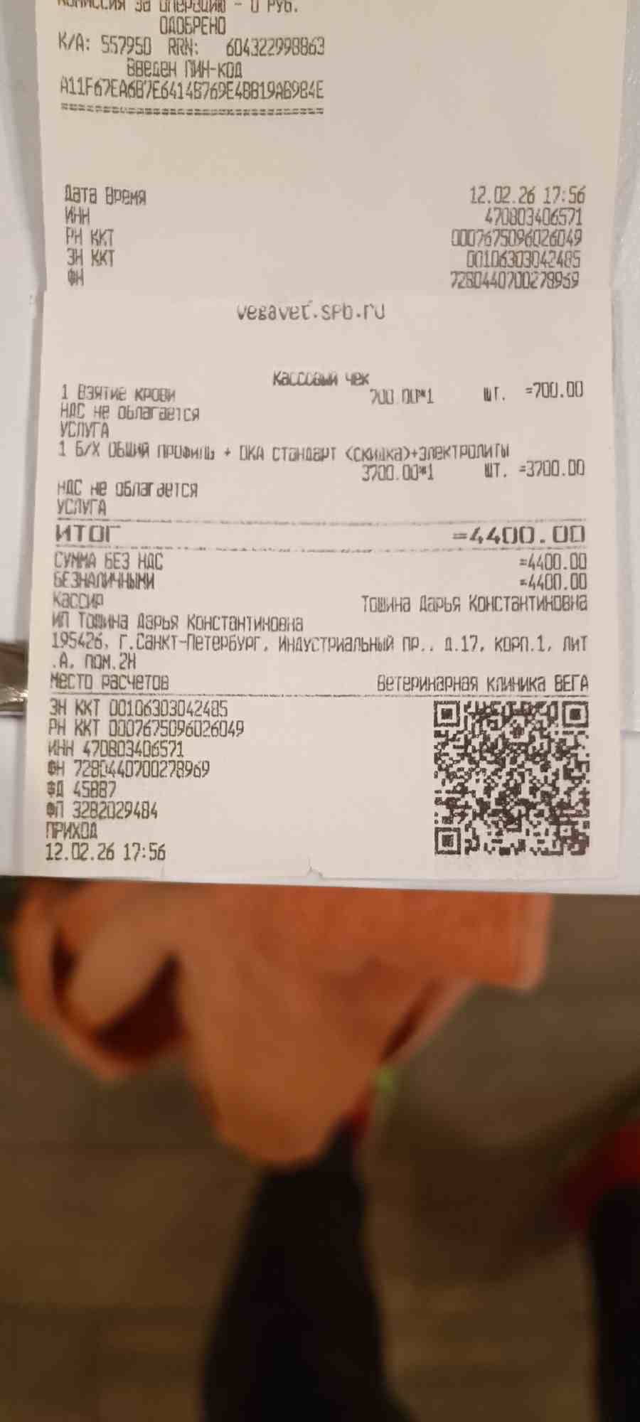 Чек за кровь. На субботу запланирована стерилизация.