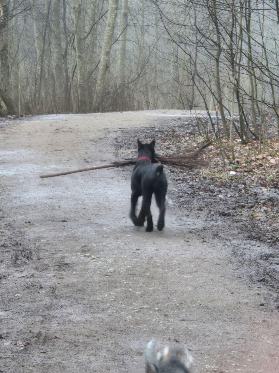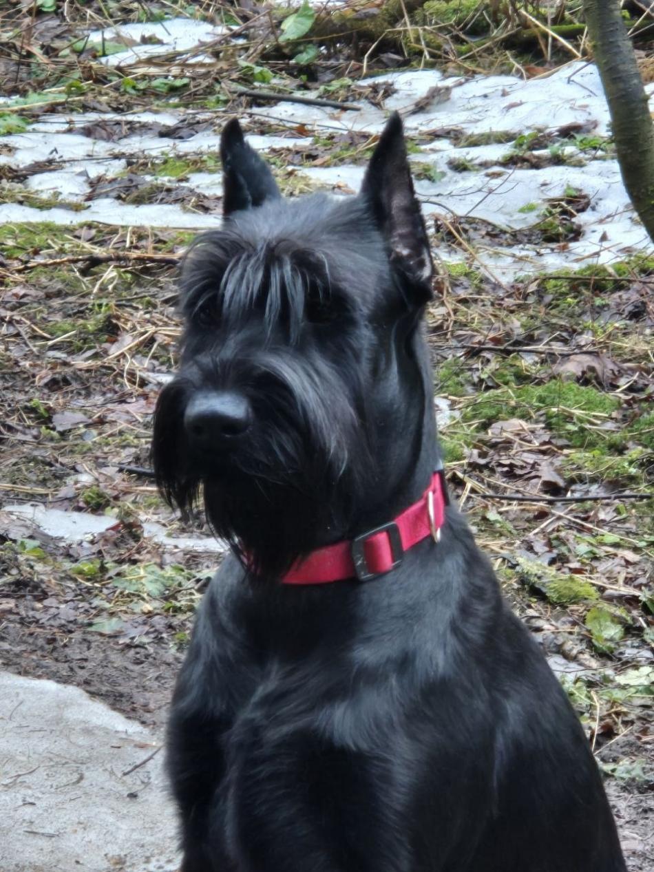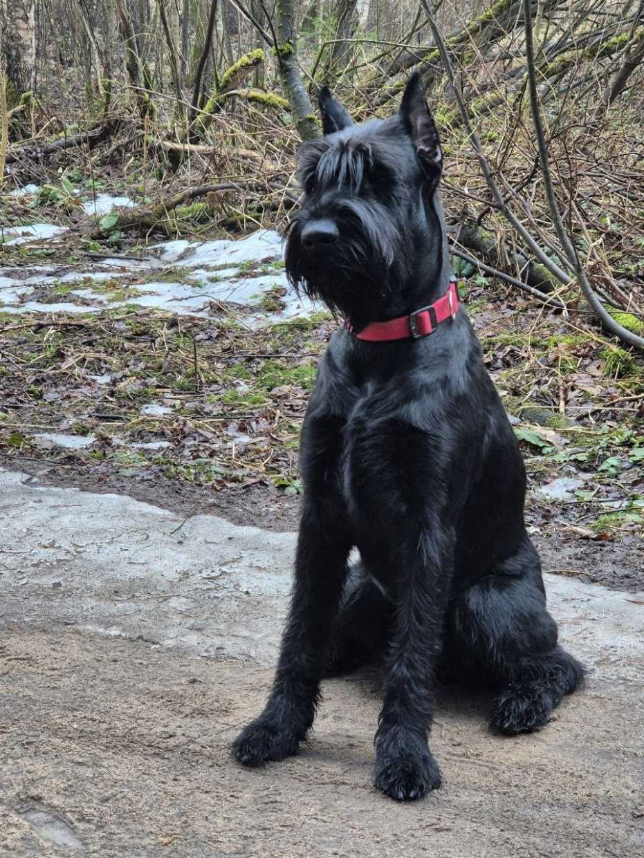 Ризеншнауцер. Полное имя Царская особа из Банды Чёрных, дома Урсула ( Уря, Урий). Уря рождена 12.02.24, ей сейчас полных 2 года. Есть родословная и ветпаспорт с отметкой о прививках, клеймо. Необходимые прививки были сделаны в мае 2025 года. Прививки плановые в середине мая 2026. Уря не стерилизована. Урсула больших собак не обижает ни сук ни кобелей, а вот маленьких может потаскать за нарядные одежды как игрушку. На улице за игрушку или палочку может цапнуть, но сначала подаст предупреждающий рык. На незнакомых людей не реагирует, проходит спокойно мимо. Если начать с ней общаться может прыгнуть и облизать, она дружелюбная собака, детей любит, а вот котов гоняет, но если догонит не знает что с ним делать, у нее спортивный к ним интерес. Когда остаётся дома одна ведёт себя хорошо, соседи не жалуются. На звонок может начать лаять. В целом тихая. Когда приходим домой встречает очень радостно и несет игрушку, может взять руку в пасть и ходить какое то время держа за руку. Никогда никого не кусала! Место и еду не охраняет, во время еды можно забрать миску, с места можно забрать игрушку. На прогулке гуляет без поводка, команду ко мне, рядом, сидеть, лежать, стоять знает. Ходит обучаться на сдачу нормативов. Выстрелов не боится. На поводке ходит хорошо, спокойно. Урсула добрая собака, не агрессивная. В семьи выбирает одного хозяина его и слушается. Остальных делает вид что игнорит, хотя если идёт гулять с другими членами семьи ( без хозяина) слушается. Любит играть на прогулке с игрушками, палками, играем в прятки. Но у Ури есть одно но, во время течки (конец) может подтекать.Стерилизовать нельзя!!! Если такое случается даём несколько дней препарат Уристоп 2р в день по 1/2 мл. В детстве перенесла цистит, было подозрение на эктопию мочеточников. Делали эндоскопическое обследование, диагноз не подтвердился. Ест хорошие сухие корма. В машине ездит хорошо, первые минут 5-10 может поиздаввть звуки, как разговаривает. Тримминг переносит хорошо, когти даёт подстричь без проблем. За шерстью следим раз 2-3 мес делаем косметику, шерсть жёсткая. Уря живет в квартире.