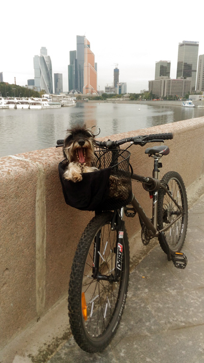 Велосипедисты знают нашу породу, я только и слышала цвергшнауцер в корзине, это же цверг-р, смотри цверг-р едет