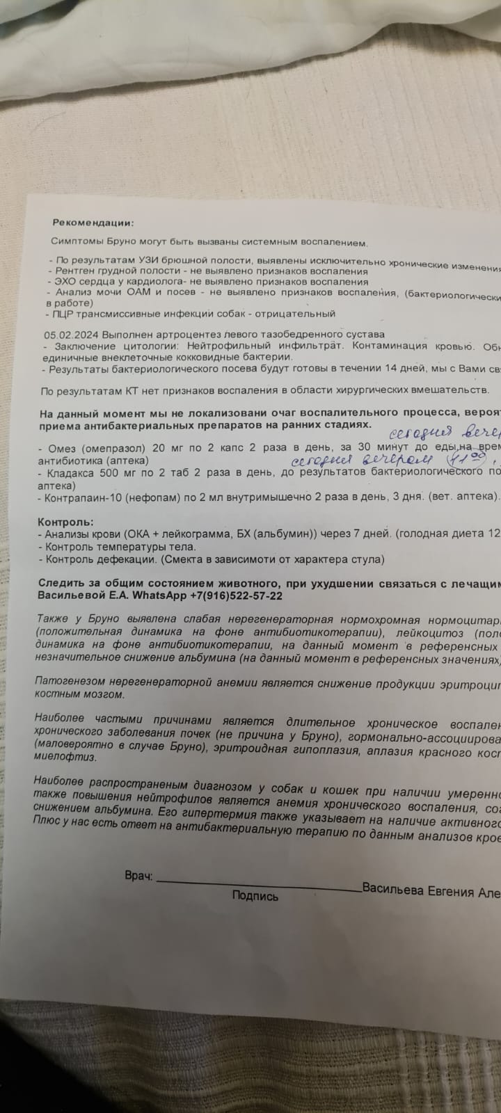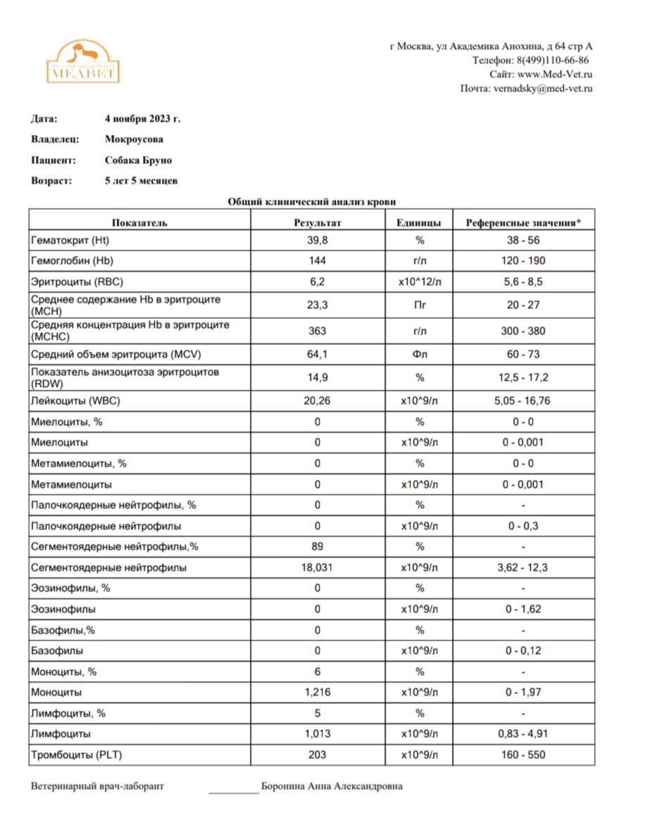 Вечером температура была 39,9. Бруно положили в стационар, так как снять боли в домашних условиях не получилось.
