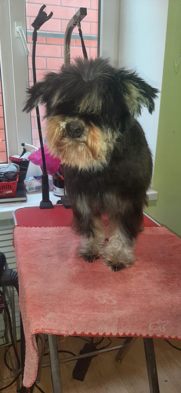 Мы с Мариной в 4 руки мыли, сушили, стригли Бубуську. Пенсия с характером, пытается "дорого" продать нарощенную шерсть.