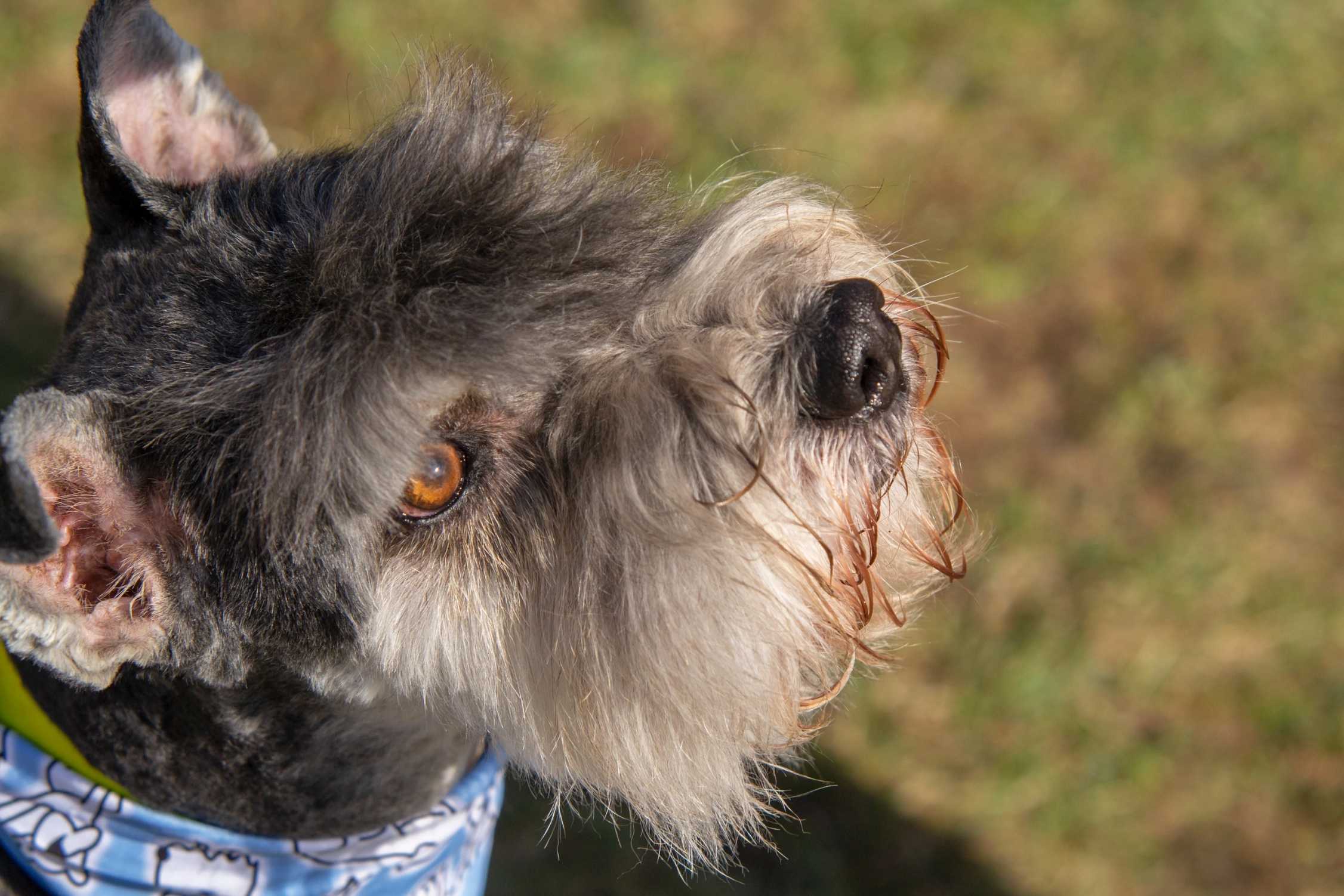 С кобелями задирается, с суками больше него тоже может. А вот с мелкими или его размером, может мирно существовать. Совсем малышей опекает, играет со всеми очень осторожно, чтобы не навредить. Игрушек не знает и не интересуется ими. Кушает сухой корм с консервной, от мяса или чего-нибудь вкусненького не откажется. На поводке ходит хорошо, но отпускать нельзя, в свободном «полёте» бананы в ушах, бежит куда глаза глядят. С детьми ведёт себя хорошо. Очень любит ласку и почесушки. К грумингу приучен. Спокойно стоит на столе, моется с удовольствием, сушить не любит голову, в остальном без проблем.