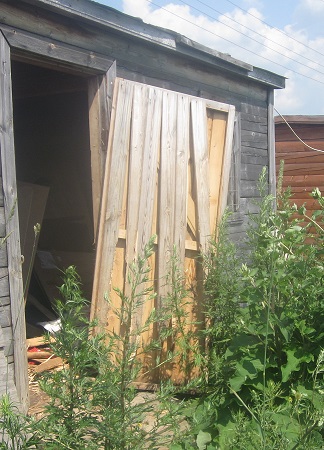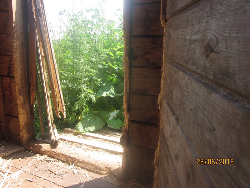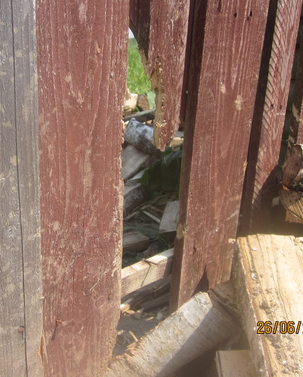 Баррикада из дров у калитки- это мы пытались хоть как-то оставить его на той половине... Пролез...
