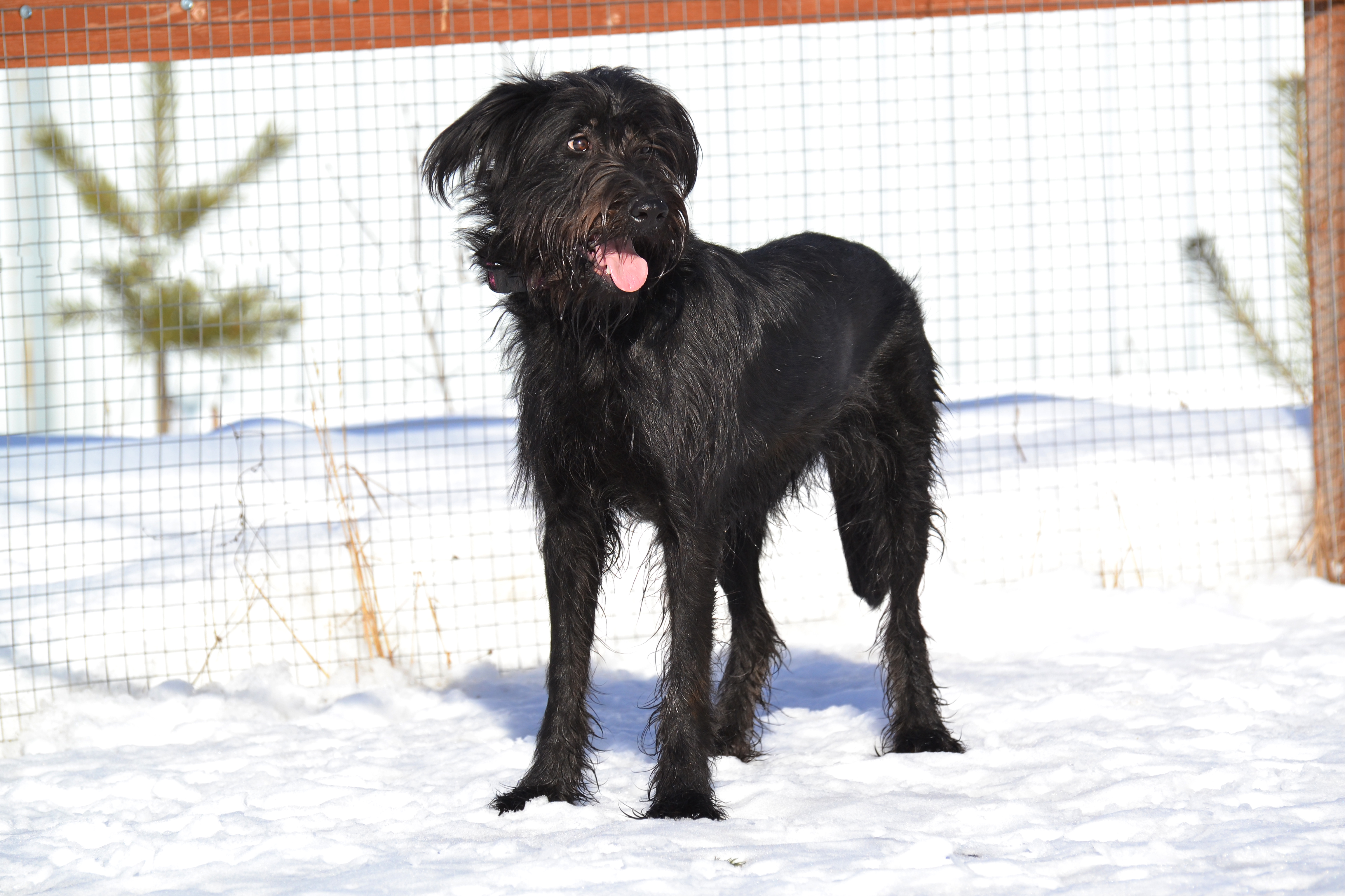 Бора - ростом чуть ниже ризеншнауцера, поскольку она метис. Ей 2 года. Бора не просто любит гулять и играть, а делает это с таким азартом, что заражает им всех вокруг (и людей, и собак). Бора будет прекрасным товарищем для игр ваших детей (конечно, лучше, если детки уже чуть подросли, поскольку энергия Боры может их просто-напросто опрокинуть). У Боры отличный аппетит. Она хорошо остается дома одна. Нормально ладит с собаками. Умеет сносно ездить в машине, хотя и не любит. Бора не боится салютов, грозы, резких хлопков, чужих людей. Она, кажется, вообще ничего не боится. Кто нужен этой собаке в качестве хозяина? Энергичный человек, который хочет завести себе собаку-компаньона. Бора - невероятно компанейская. Она вообще-то за любой кипиш, кроме голодовки.