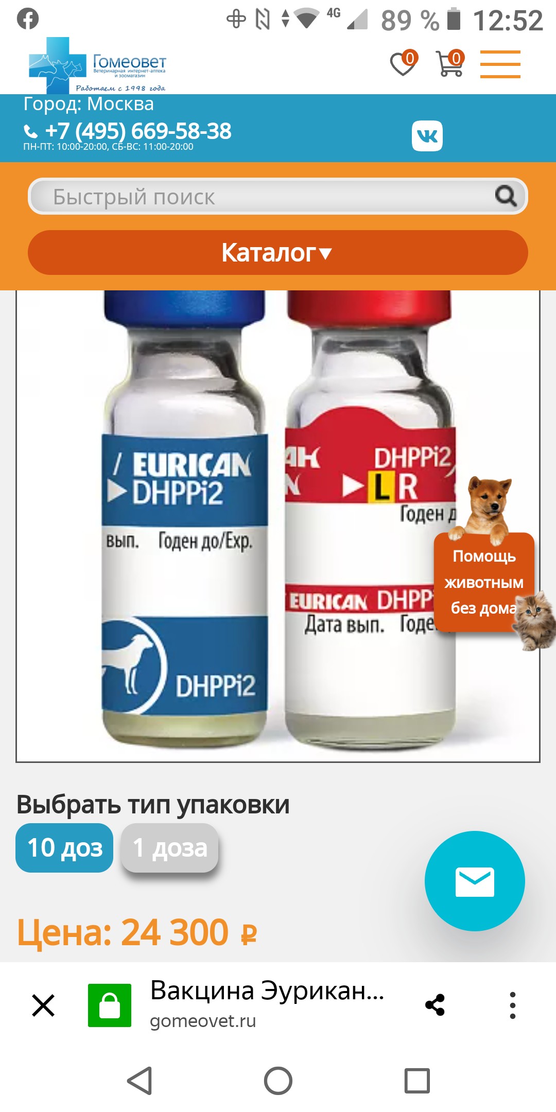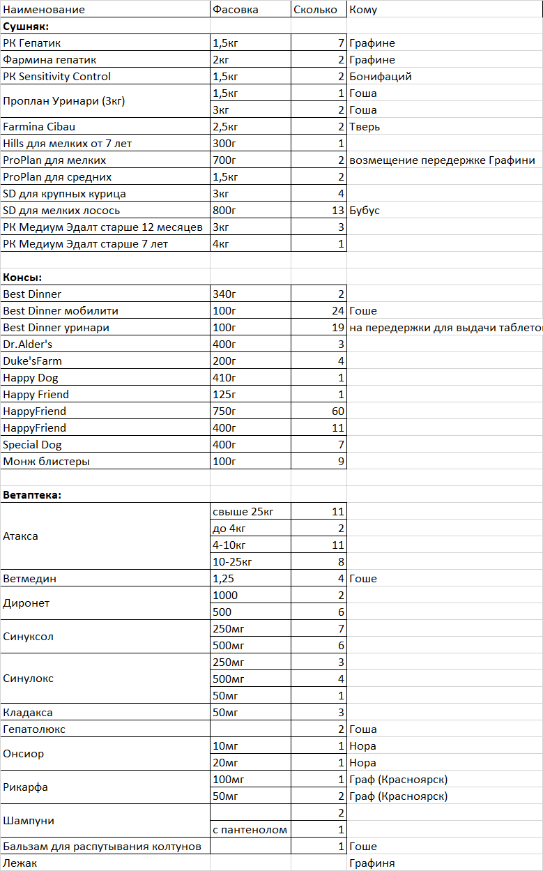 Re: корма, вакцины, лекарства в ФПШ Москва