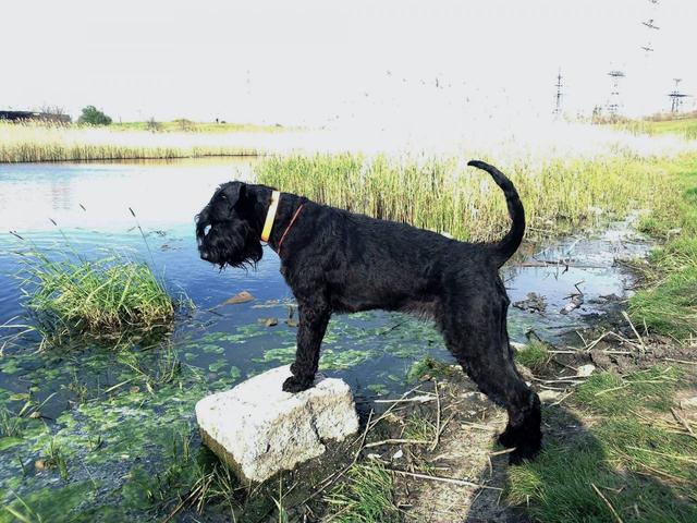Не удержалась выкладываю фото собаки в поле - черные шнауцеры на зеленой траве